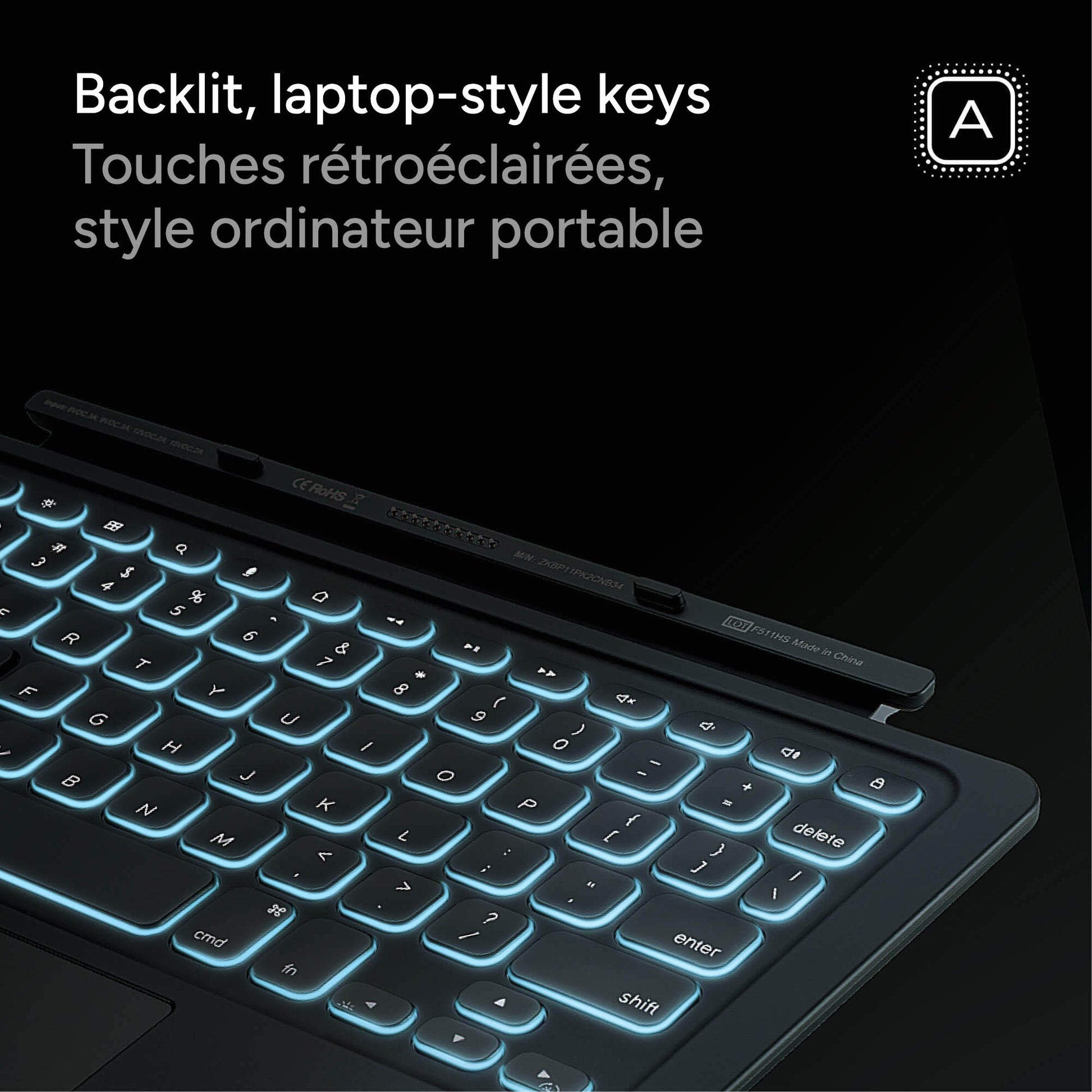 The new and improved indented keys are so comfortable and efficient, you’ll forget you're working on an iPad. Also, the keyboard is backlit in seven different colors, so you can work easily in low-light conditions.