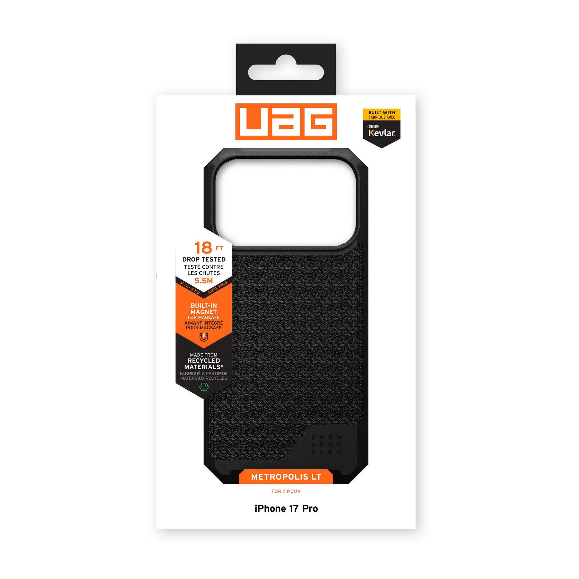 The UAG Metropolis LT case series features a strong TPU frame and an impact-absorbing inner bumper, ensuring comprehensive protection against accidental drops and bumps. With sculpted corners that reinforce drop protection and a stylish DuPont™ KEVLAR® Fiber Inlay, confidently take your device from a meeting to an adventure without skipping a beat. Though it’s not visible on the exterior, the case is equipped with a powerful built-in magnet module, providing seamless compatibility with MagSafe charging. Get ready to experience the perfect harmony of functionality and protection with the Metropolis LT series.