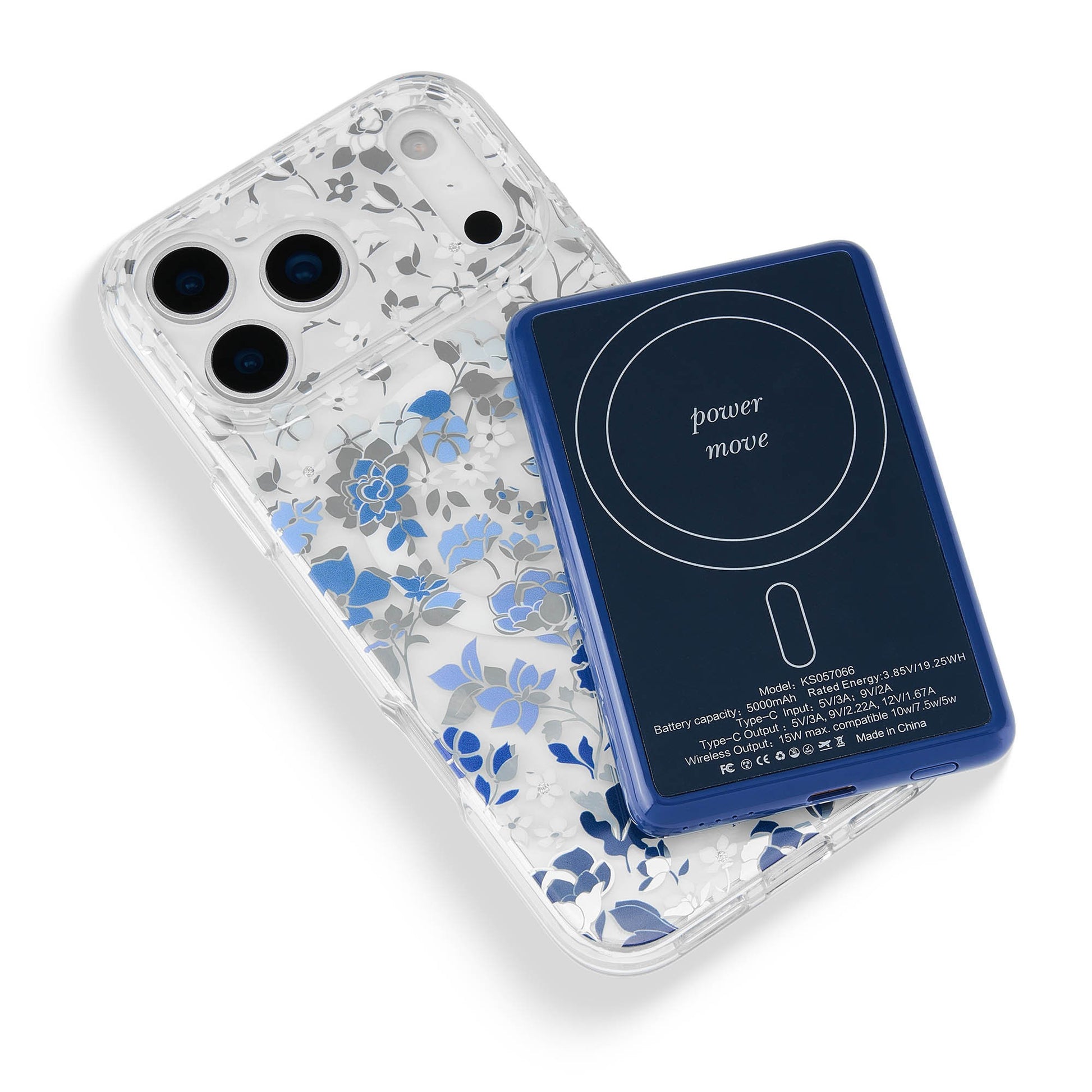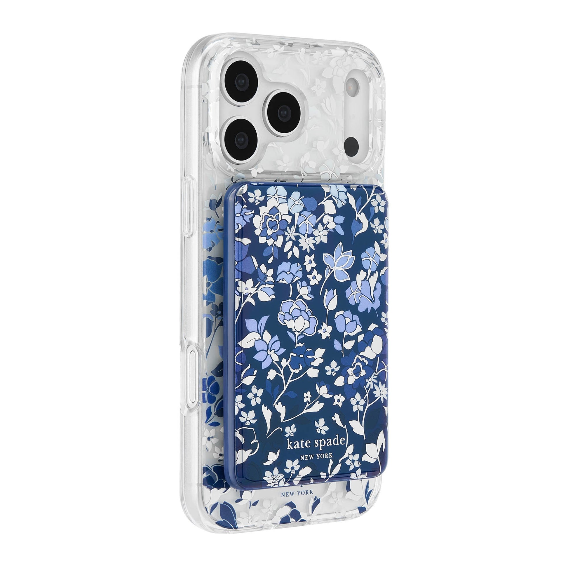 The Kate Spade 5,000mAh Wireless MagSafe Battery Pack in Flowerbed Blue combines chic floral style with secure magnetic charging and portable power on the go.