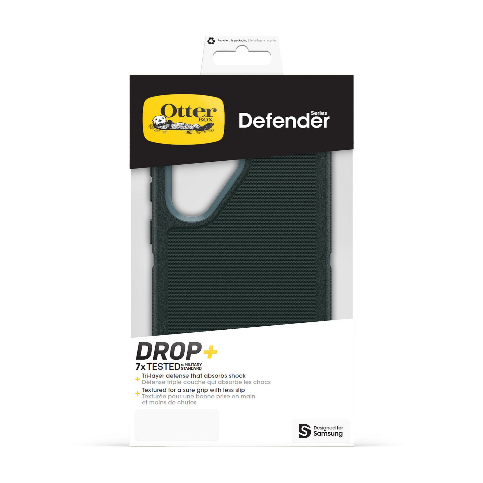 For peak protection, trust the OtterBox Defender Series Pro case. It features a tri-layer design with a silicone outer cover, rigid inner shell and memory foam backing that work together to deflect whatever damage might happen — and deliver 7X military standard drop defense. Plus, it's equipped with corners that absorb shock, all-over texturing for greater grip, wireless charging compatibility and built-in anchors for connecting phone straps. When you need real defenses, you need Defender Series Pro.